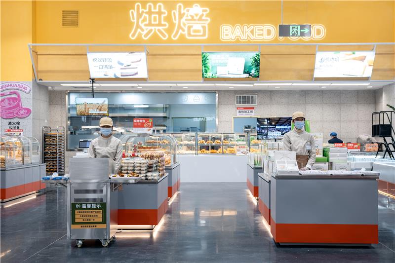 與未改造的永輝超市門店相比,世紀(jì)金源店改動(dòng)不小。兼顧日常生鮮食品消費(fèi)和節(jié)假日集中采購,是這家店呈現(xiàn)出得一大訴求。世紀(jì)金源店賣場布局更具空間感,烘焙、熟食、鮮肉、水果、蔬菜、水產(chǎn)、食品、百貨、酒飲、散裝零食等品類依次分布在賣場主動(dòng)線上。精選出的近10000個(gè)SKU采用量販?zhǔn)疥惲校沟谜麄€(gè)賣場更像是一家倉儲(chǔ)店。永輝超市同時(shí)在賣場內(nèi)設(shè)置了多個(gè)試吃點(diǎn),日常為消費(fèi)者提供主推單品試吃試飲,吸引其購買。其中鮮食加工區(qū)、生鮮區(qū)是兩個(gè)主力區(qū)域,承擔(dān)了提升差異化,培養(yǎng)顧客粘性的職能。鮮食加工涵蓋烘焙、熟食、餐飲等品類。永輝超市一方面借鑒引入了榴蓮千層、烤雞等網(wǎng)紅商品,給沒有接觸過會(huì)員店、但又能夠從小紅書等社交網(wǎng)絡(luò)平臺(tái)上了解到相關(guān)網(wǎng)紅品的消費(fèi)者提前體驗(yàn)。另一方面, 永輝超市也聯(lián)合當(dāng)?shù)毓?yīng)商,上架了有機(jī)鮮花餅、甜皮鴨等區(qū)域特色商品。其中烘焙品類是永輝超市重點(diǎn)發(fā)力的增長品類。《第三只眼看零售》認(rèn)為,這也是零售企業(yè)發(fā)力產(chǎn)品差異化,向制造型零售商靠攏的機(jī)會(huì)品類。因?yàn)楹姹合M(fèi)的場景邊界正在模糊,逐漸從節(jié)日、紀(jì)念日滲透進(jìn)人們?nèi)粘I钪械牧闶场⒄汀T诖吮尘跋拢闶凵烫峁┵徺I方便、品類齊全的烘焙產(chǎn)品,培養(yǎng)了消費(fèi)者“隨手帶”一份烘焙商品、隨吃隨買的習(xí)慣。而且,相比較烘焙專業(yè)店來說,零售賣場的烘焙品類更具性價(jià)比。生鮮品類是永輝超市的強(qiáng)項(xiàng)。結(jié)合產(chǎn)地倉優(yōu)勢后,世紀(jì)金源店進(jìn)一步強(qiáng)化其新鮮感。例如門店內(nèi)設(shè)置的步入式生鮮冷藏區(qū),具有兩個(gè)功能。一是陳列有100個(gè)左右的蔬菜單品,讓對(duì)新鮮程度要求最高的蔬菜保持穩(wěn)定低溫,以此減少損耗;二是發(fā)揮暫儲(chǔ)功能。例如預(yù)估銷量較大的賣場堆頭陳列生鮮品等即可暫存在冷藏區(qū)內(nèi),方便門店隨時(shí)補(bǔ)貨。《第三只眼看零售》注意到,世紀(jì)金源店內(nèi)的生鮮品類均為預(yù)包裝銷售。其中超90%商品由永輝云南產(chǎn)地倉的加工倉自主完成,多重保障嚴(yán)控食品安全。而且,店中設(shè)有獨(dú)立肉品加工間,可以實(shí)現(xiàn)肉禽類產(chǎn)品冷藏、冷凍雙位一體,并能根據(jù)消費(fèi)者需求實(shí)現(xiàn)現(xiàn)場切割。“生鮮品牌化能為商品帶來更可觀的附加值,例如產(chǎn)品生產(chǎn)標(biāo)準(zhǔn)化、更多溢價(jià)空間、原材料、品質(zhì)保障、縮短消費(fèi)者選擇路徑等。實(shí)際上現(xiàn)在不少零售企業(yè)也在著力推動(dòng)自有品牌建設(shè),并從低價(jià)賣點(diǎn)階段發(fā)展到高品質(zhì)、性價(jià)比階段。”凱度消費(fèi)者指數(shù)大中華區(qū)總經(jīng)理虞堅(jiān)曾對(duì)《第三只眼看零售》分析稱。生鮮標(biāo)品化程度提升后,也有利于企業(yè)做到線上線下每一個(gè)生鮮單品同條碼、同價(jià)格、同品質(zhì),從而迎合線上線下一體化運(yùn)營需求。例如世紀(jì)金源店即可通過“自有渠道+第三方渠道”為消費(fèi)者提供線上最遠(yuǎn)20公里半徑內(nèi)配送、最快30分鐘送達(dá)服務(wù)。此外,圍繞“全球+全國+本地”的垂直供應(yīng)鏈,永輝結(jié)合當(dāng)前消費(fèi)趨勢及當(dāng)?shù)叵M(fèi)偏好,幾乎在每個(gè)產(chǎn)品類目中都打造出了“進(jìn)口+全國+云南特色”的商品結(jié)構(gòu)。就拿生鮮產(chǎn)品來說,永輝云南旗艦店引入了來自新西蘭的牛羊肉、進(jìn)口龍蝦、帝王蟹等優(yōu)質(zhì)進(jìn)口生鮮產(chǎn)品,來自全國各優(yōu)質(zhì)產(chǎn)區(qū)的新鮮蔬果,也增加了具有本地特色的云南火腿、牛干巴、天麻等地域農(nóng)副生鮮產(chǎn)品,最大程度滿足不同消費(fèi)者需求。