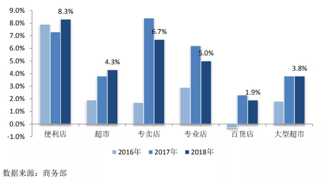 圖/2016-2018年商務部零售業典型統計調查分業態增速