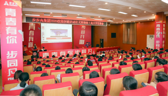 步步高集團副總裁兼智慧零售事業部COO徐莎莉與近300名應屆畢業生相約湖南工商大學圖書館報告廳,共同暢想美好新世界。湖南工商大學黨委委員、副校長曾伏秋、湖南工商大學招生就業處副處長易玉梅、步步高集團人力資本高級總監龍蓉暉及步步高各事業部人資負責人出席了本次活動。