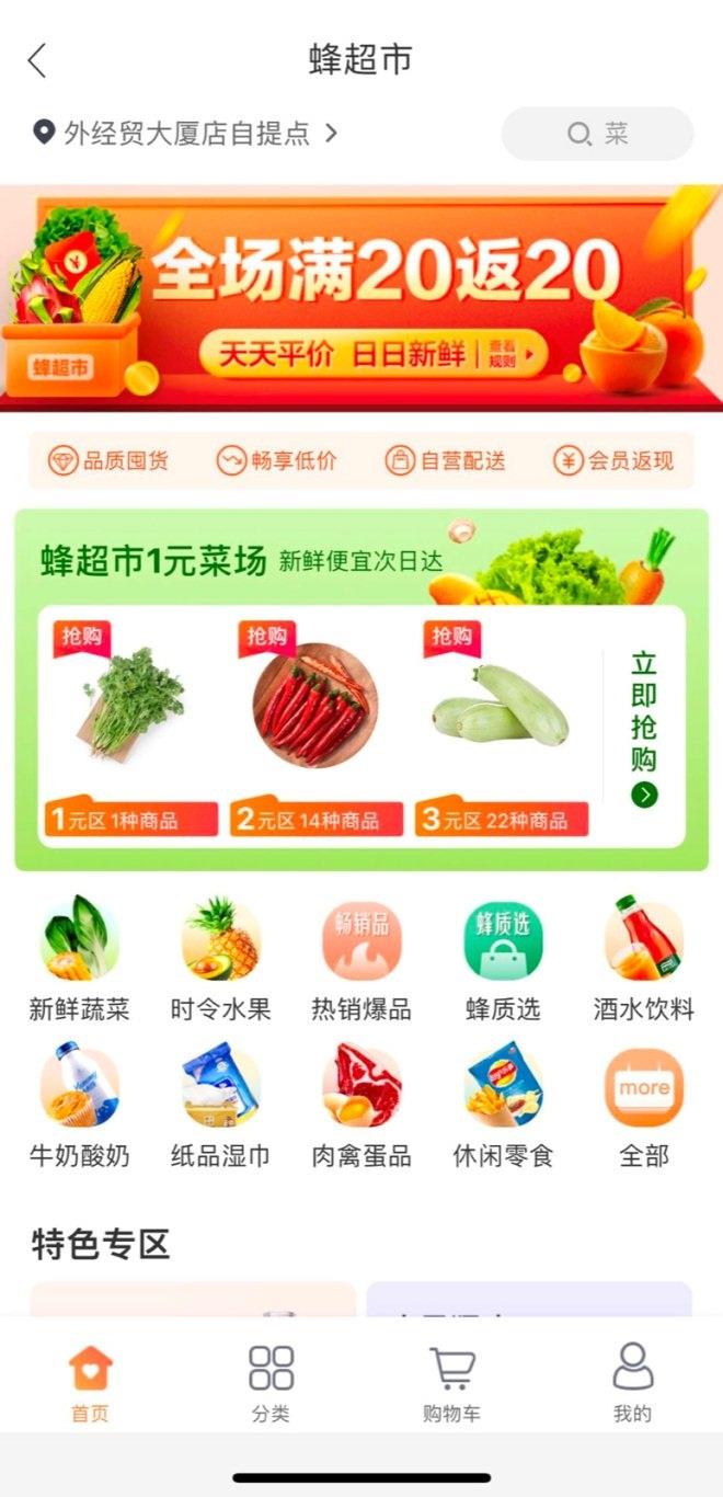 據悉,該業務是于9月中旬上線,最初只在幾十家門店做試運營,國慶起在京津兩地全范圍開啟,消費者只要位于任意便利蜂店鋪附近2-3公里范圍,都可以通過便利蜂的在線平臺購買。目前該菜市覆蓋除活禽之外的蔬菜、水產、肉禽蛋、酒水、水果、乳制品、廚房用品、速凍食品、休閑零食和糧油調味品等品類,采取頭天訂貨、第二天到店自提或送貨上門的形式。