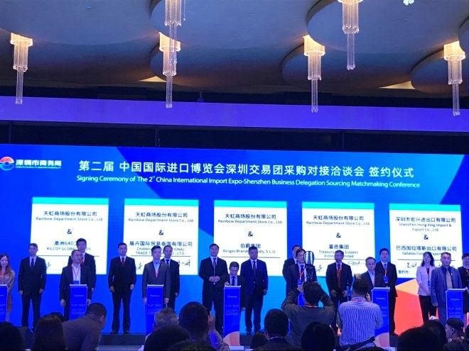 博覽會開幕當日,作為廣東省深圳市采購團一員,天虹與KILCOY GLOBAL FOODS(澳洲640工廠)、ZHANHUI INTERNATIONAL TRADE THAILAND CO.,LTD(展卉國際貿易泰國有限公司)、Borges Branded Foods S.L.U. (伯爵食品有限公司)、Treasury Wine Estates Vintners Limited (富邑葡萄酒集團)等四家企業(yè)達成戰(zhàn)略合作并簽訂超億元采購協(xié)議。