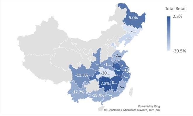 與去年5月相比,總體客流回歸了80%左右,降幅比4月同比收窄了約10個百分點,5月零售市場活力有所增強。