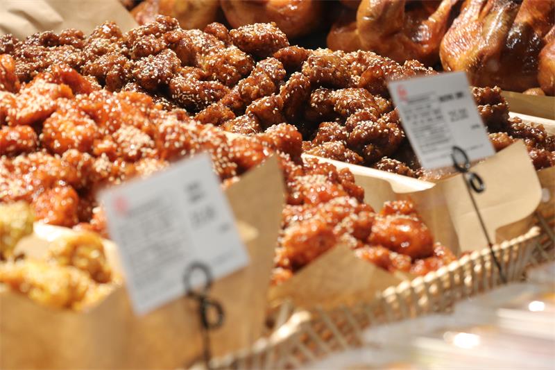 商品方面,門店在保障民生需求的基礎上,引入了越來越多高品質、多樣化、個性化的商品。熟食區增加了炸雞、烤雞、鹵腸等單品,水果區不乏鮮榨果汁、水果撈等人氣商品的身影,深受顧客歡迎的DL精釀啤酒、DL燕麥脆、DL花生油等胖東來爆款產品也都一一亮相。據統計,此次調改重新規劃了單品數13477個,新增單品占比80.9%,梳理后商品結構達到胖東來商品結構的90%以上。