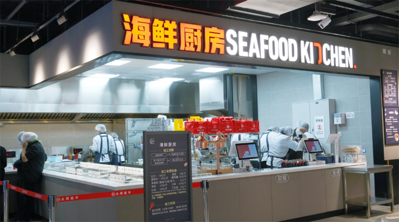 在調改過程中,門店整體破拆率接近90%,一層規劃全鮮食品類,烘焙、加工堂食、海鮮廚房、活鮮、肉禽等品類,方便顧客購物就餐需求;二層中庭不堆砌商品,取而代之的是寬敞的休息區,將寶貴的空間歸還給顧客。同時,整體開放式動線的調整也讓購物變得更加愉快。門店的設備業進行了升級,從冷鏈設備到加工餐廚設備,整體硬件設施更新占比達到100%,設備品牌也與胖東來時代廣場店高度一致。
