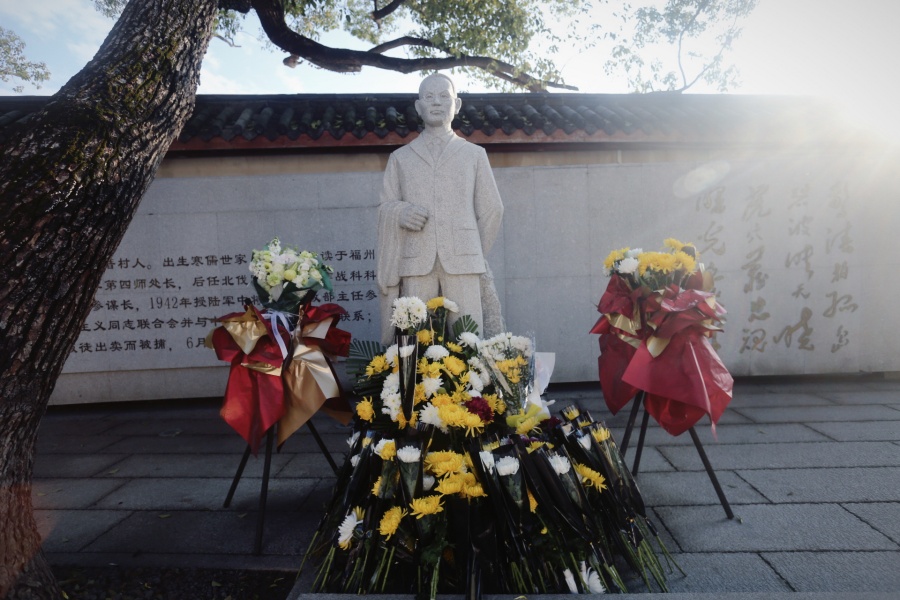 參觀結束后,在王守誠的帶領下,黨員們懷著崇敬的心情整齊列隊,向吳石烈士雕像依次敬獻獻花,全體人員肅立默哀并深深三鞠躬,以表達對革命先烈的崇高敬意與深切緬懷。